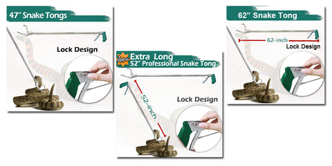 The length of the tong you will choose depends on the size of the snake. It is easy to think that long tongs are safer, but they are always hard to control when dealing with heavy snakes. Short length tongs also may compromise your safety. It is, therefore, prudent to understand the type of snake that you will be dealing with to help you choose the length correctly. 40 to 50-inch length is better.