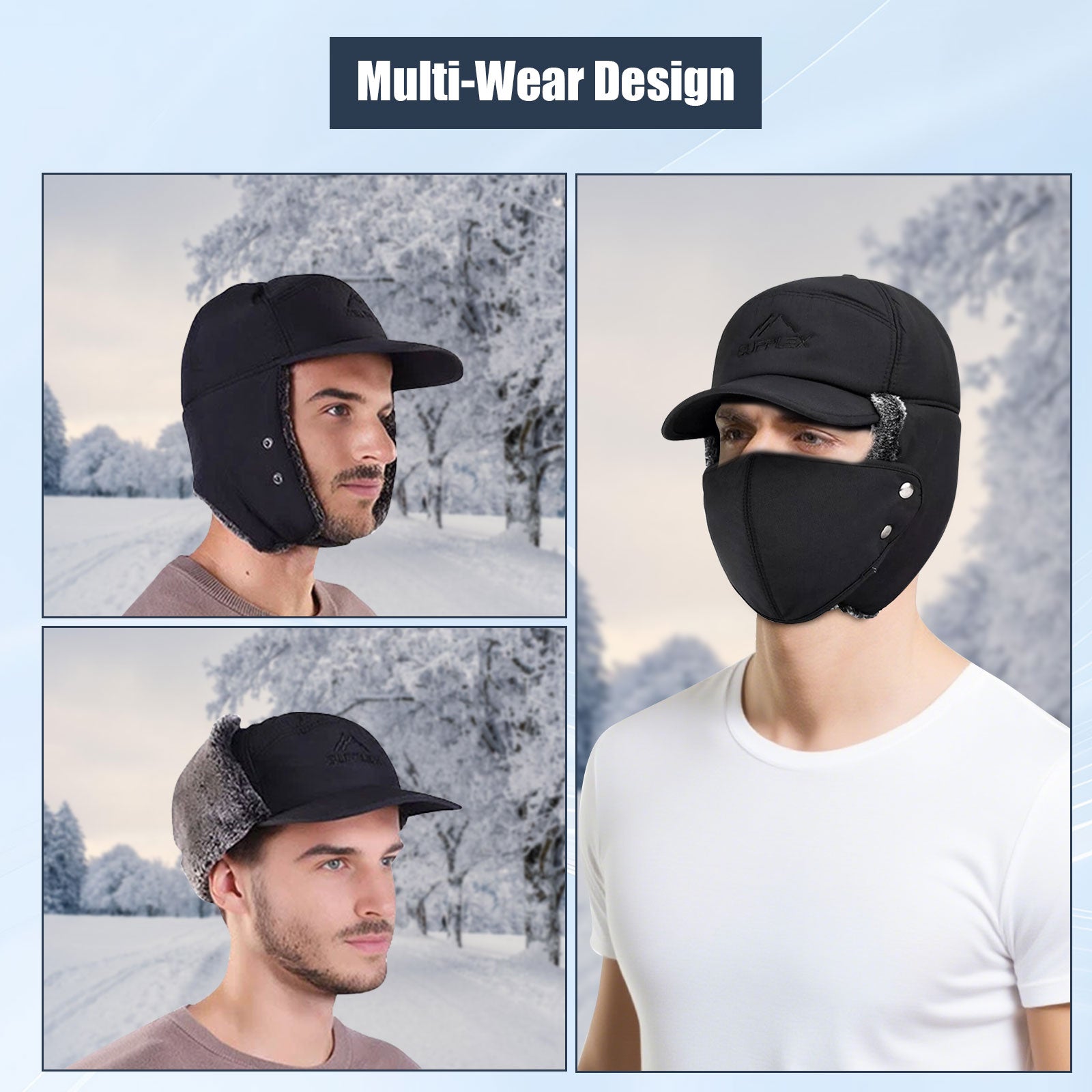 - Ear Flaps & Mask: The faux fur ear flaps are thick and soft, wrapping your ears in warmth and shielding them from cold winds. The detachable mask is made with breathable fabric, adding extra face protection while staying warm without feeling stuffy—giving you comprehensive warmth with lasting comfort.